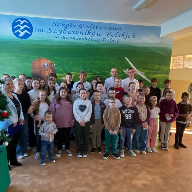 Jest w Bezmiechowej Dolnej szkoła podstawowa im. Szybowników Polskich. To tam, w minioną sobotę 18 stycznia, w środku śnieżnych Bieszczad pojawili się piloci z Gliding Team Klinika Kolasiński: Łukasz Grabowski – aktualny mistrz Europy w klasie 15m i Jacek Flis – aktualny mistrz Europy w klasie klub.