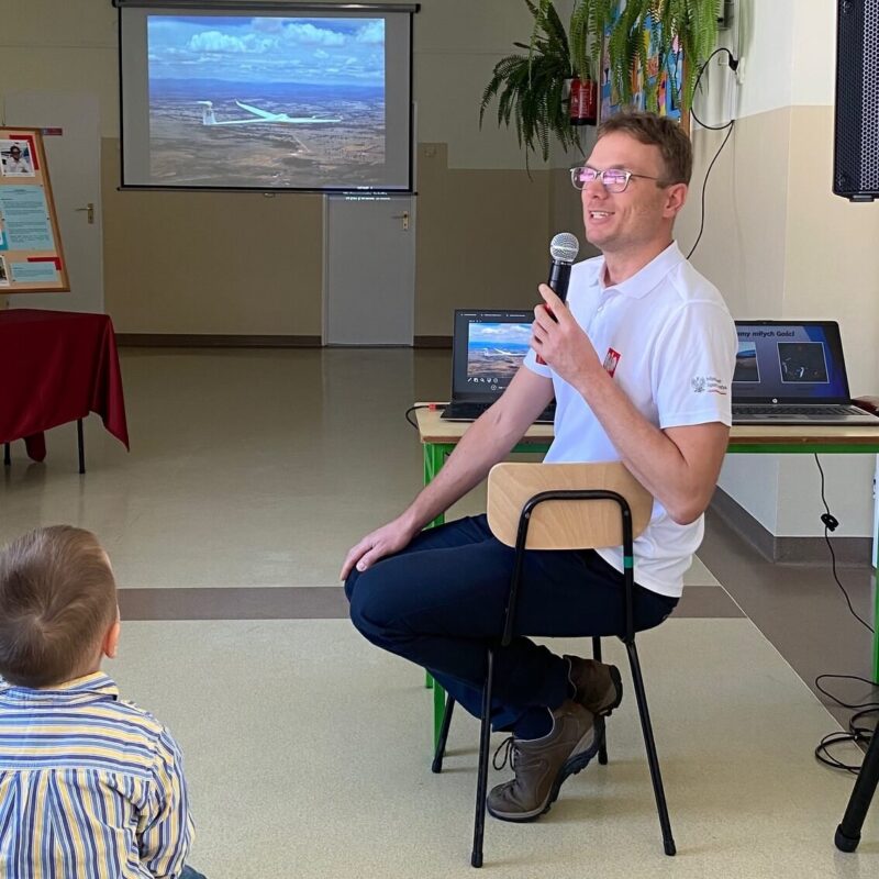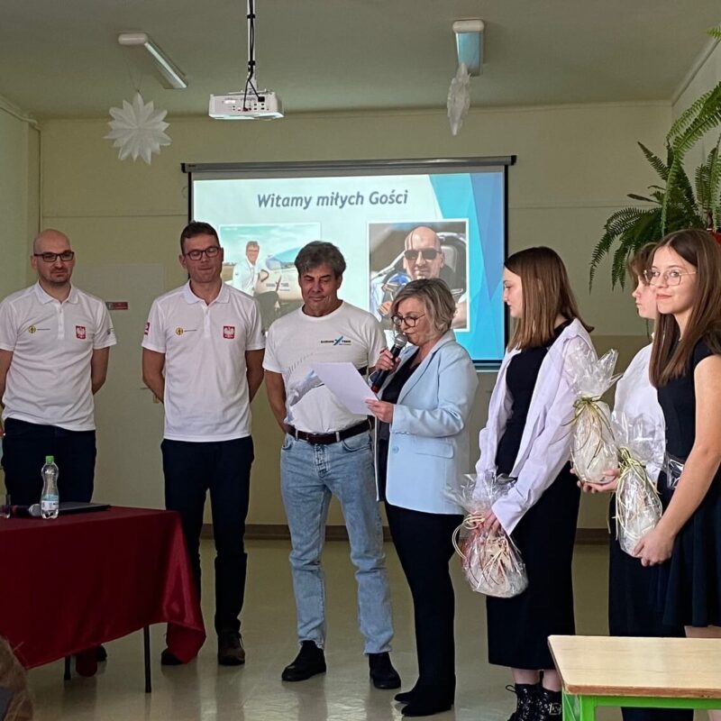 W towarzystwie twórcy Teamu, dr Jerzego Kolasińskiego, opowiadali o urokach szybownictwa licznie zgromadzonej młodzieży szkolnej. Było wiele ciekawych pytań, była fantastyczna atmosfera. Może ktoś z grona małych słuchaczy połknął bakcyla latania z pasją.